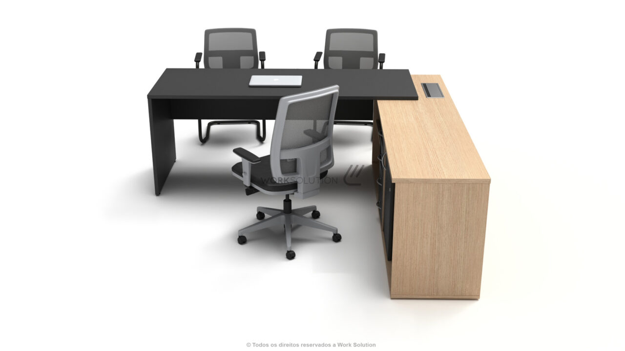 Logo abaixo, explore detalhes das mesas para escritório através dos recursos: 360º, simulação de cores, ilustração técnica e muitos outros.
